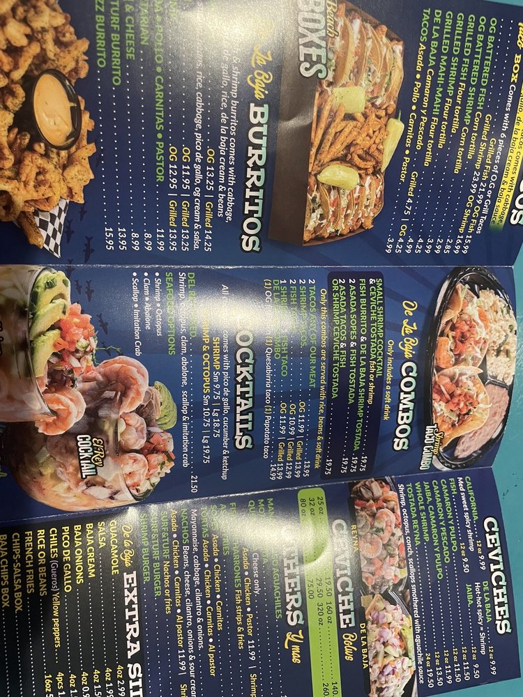 Choose one burrito and one taco: Bean and cheese, Asada, or De la Baja OG burrito; OG battered fish, shrimp taco, or Asada taco.